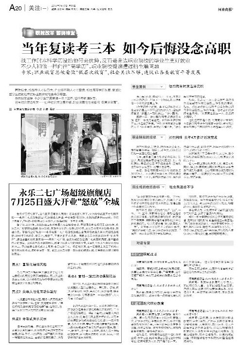 这位负责人谈到,针对这一现象,国务院于2005年印发《国务院关于大力发展职业教育的决定》,河南省从2008年开始实施职业教育攻坚计划,几年下来,取得了成绩,但还有问题还需要进一步解决。该负责人说,《决定》的出台,就是要打通从中职、专科、本科到研究生甚至博士生的上升通道。